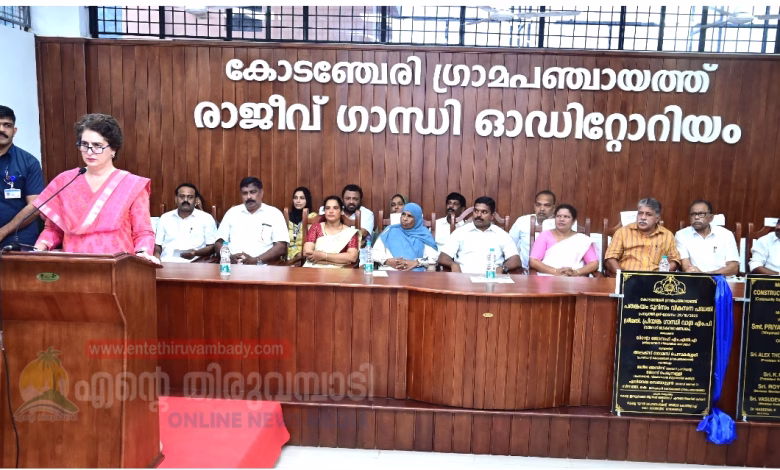 പ്രിയങ്ക ഗാന്ധി എം.പി കോടഞ്ചേരി ഗ്രാമപഞ്ചായത്തിൽ വിവിധ പദ്ധതികൾ ഉദ്ഘാടനം ചെയ്തു