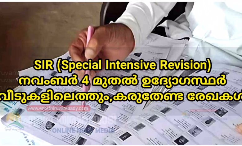 SIR (Special Intensive Revision) നവംബർ 4 മുതൽ ഉദ്യോഗസ്ഥർ വീടുകളിലെത്തും,കരുതേണ്ട രേഖകൾ ഇതാണ്..