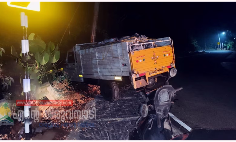 വൈദ്യുതി പോസ്റ്റിൽ ഇടിച്ച് നിന്നത് കാരണം വാഹനം സമീപത്തെ തോട്ടിലേക്ക് പതിക്കാതെ വലിയൊരു അപകടം ഒഴിവായി.