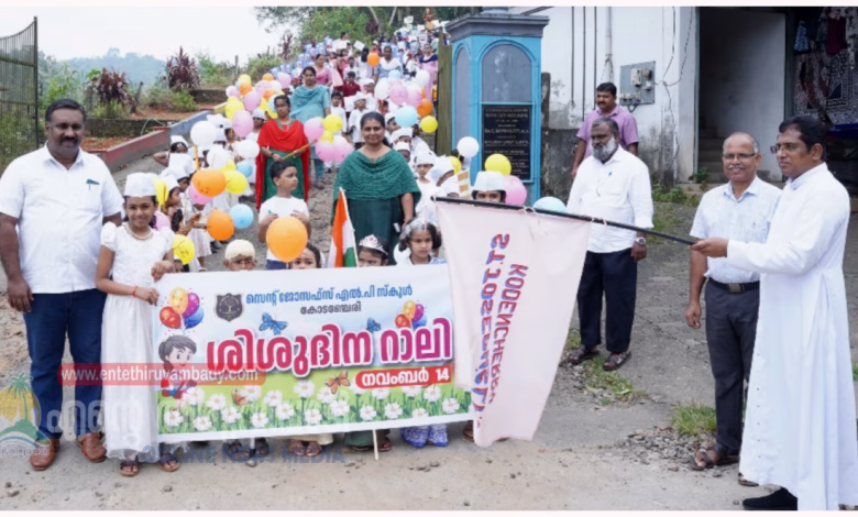 കോടഞ്ചേരി : ശിശുദിനത്തോടനുബന്ധിച്ച് കോടഞ്ചേരി സെൻ്റ് ജോസഫ്സ് എൽ.പി സ്കൂളിൽ വിവിധ പരിപാടികൾ സംഘടിപ്പിച്ചു. ശിശുദിന റാലി സ്കൂൾ മാനേജർ റവ ഫാ.കുര്യാക്കോസ് ഐക്കൊളമ്പിൽ ഫ്ലാഗ് ഓഫ് ചെയ്തു. നിറപ്പകിട്ടാർന്ന വേഷവിധാനങ്ങളുമായി കെ.ജി ക്ലാസ്സ് മുതലുള്ള കുരുന്നുകൾ പങ്കെടുത്ത റാലി ഏവരുടെയും ശ്രദ്ധപിടിച്ചുപറ്റി. തുടർന്ന് ഈ വർഷത്തെ സബ്ജില്ലാ – സ്കൂൾ തല കലാമേളകളിലെ വിജയികൾക്കുള്ള സർട്ടിഫിക്കറ്റുകളും സമ്മാനങ്ങളും വിതരണം ചെയ്തു. സ്കൂൾ ഓഡിറ്റോറിയത്തിൽ നടന്ന അനുമോദന സംഗമം ഉപജില്ലാ വിദ്യാഭ്യാസ ഓഫീസർ പൗളി മാത്യൂ ഉദ്ഘാടനം ചെയ്തു. പി.ടി.എ പ്രസിഡണ്ട് ആൻ്റണി ചൂരപ്പൊയ്കയിൽ അധ്യക്ഷത വഹിച്ചു. എൽ.എസ്.എസ് ജേതാക്കൾക്കുള്ള മെമൻ്റോകളും എ. ഇ. ഒ വിതരണം ചെയ്തു. പ്രധാനധ്യാപകൻ ജിബിൻ പോൾ സ്വാഗതവും സ്റ്റാഫ് പ്രതിനിധി ഡെന്നീസ് എൻ.സി നന്ദിയും പറഞ്ഞു. ശിശുദിനത്തോടനുബന്ധിച്ച് കുട്ടികൾക്ക് പായസ വിതരണവും നടത്തി.