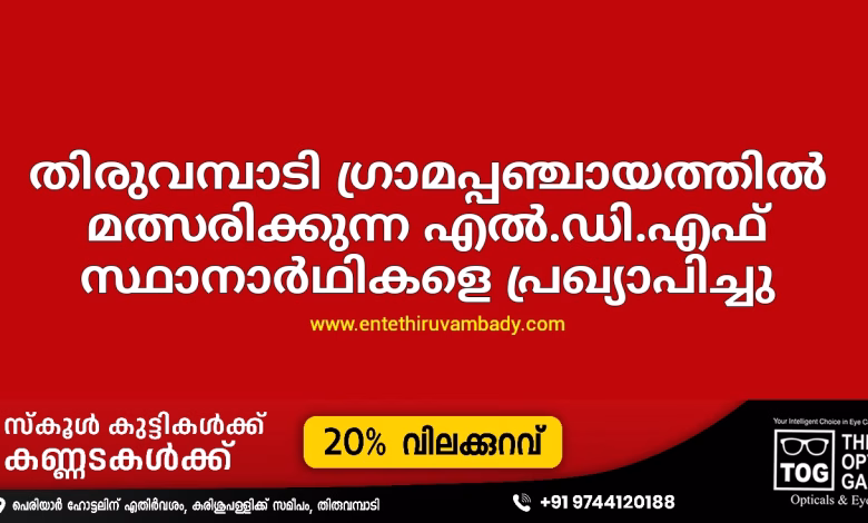 തദ്ദേശസ്വയംഭരണ തിരഞ്ഞെടുപ്പിൽ തിരുവമ്പാടി ഗ്രാമപ്പഞ്ചായത്തിൽ മത്സരിക്കുന്ന എൽഡിഎഫ് സ്ഥാനാർഥികളെ പ്രഖ്യാപിച്ചു