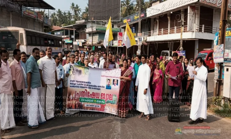 കോടഞ്ചേരി: വന്യമൃഗങ്ങളുടെ ആക്രമണങ്ങൾ മനുഷ്യജീവന് ഭീഷണിയായി മാറിക്കൊണ്ടിരിക്കുന്ന സാഹചര്യത്തിൽ വയനാട്ടിലെ വന്യമൃഗ ശല്യം അനുഭവിക്കുന്ന സഹോദരങ്ങളോടുള്ള ഐക്യദാർഢ്യം പ്രഖ്യാപിച്ചുകൊണ്ട് കോടഞ്ചേരി ടൗൺ ചുറ്റി എ. കെ.സി സിയുടെ നേതൃത്വത്തിൽ എല്ലാ സംഘടനകളുടെയും ഇടവക മുഴുവന്റെയും പ്രതിഷേധ റാലി നടത്തി.