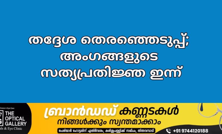 സംസ്ഥാനത്ത് തദ്ദേശതെരഞ്ഞെടുപ്പില് വിജയിച്ച അംഗങ്ങളുടെ സത്യപ്രതിജ്ഞ ഞായറാഴ്ച നടക്കും. നിലവിലെ ഭരണസമിതിയുടെ അഞ്ചുവര്ഷ കാലാവധി ശനിയാഴ്ച അവസാനിക്കും. ഗ്രാമപഞ്ചായത്ത്, ബ്ലോക്ക് പഞ്ചായത്ത്, ജില്ല പഞ്ചായത്ത്, മുനിസിപ്പല് കൗണ്സിലുകള് എന്നിവിടങ്ങളില് ഇന്ന് രാവിലെ 10നും കോര്പറേഷനില് 11.30നുമാണ് സത്യപ്രതിജ്ഞ. പ്രായം കൂടിയ അംഗങ്ങളാവും ആദ്യം സത്യപ്രതിജ്ഞ ചെയ്യുക. സത്യപ്രതിജ്ഞ/ദൃഢപ്രതിജ്ഞ എന്നിവ ചെയ്താണ് അംഗങ്ങൾ അധികാരമേൽക്കുക. മുതിർന്ന അംഗം സർക്കാർ ഇതിലേക്ക് ചുമതലപ്പെടുത്തിയ ഉദ്യോഗസ്ഥർ മുമ്പാകെയാണ് പ്രതിജ്ഞയെടുക്കേണ്ടത്.