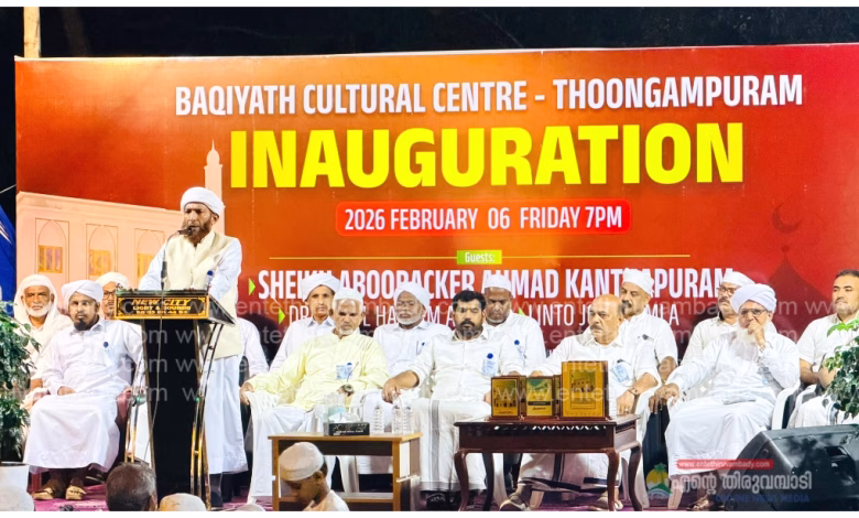 ഓമശ്ശേരി: തൂങ്ങംപുറം ബാഖിയാത്ത് കൾച്ചറൽ സെന്റർ നാടിന് സമർപ്പിച്ചു. മത-സാമൂഹിക രംഗത്തെ പ്രമുഖരുടെ സാന്നിധ്യത്തിൽ ജാമിഅഃ മർകസ് ഡയരക്ടർ ജനറൽ സി. മുഹമ്മദ് ഫൈസി ഉദ്ഘാടനം ചെയ്തു. അബൂഹാജി പുള്ളിപ്പൊയിൽ അധ്യക്ഷത വഹിച്ചു. ബാഖിയാത്ത് പ്രിൻസിപ്പാൾ അശ്റഫ് സഖാഫി വെണ്ണക്കോട് ആമുഖ പ്രഭാഷണം നടത്തി.