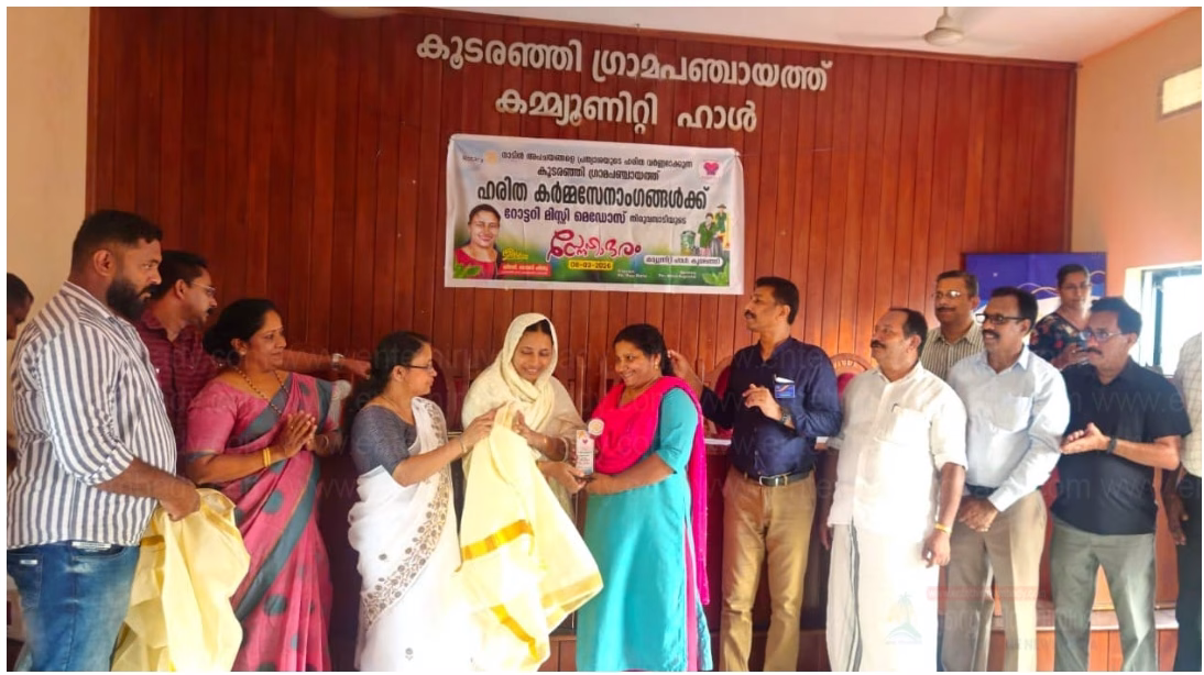 ലോക വനിതാ ദിന ആഘോഷങ്ങളുടെ ഭാഗമായി കൂടരഞ്ഞി പഞ്ചായത്തിലെ മുഴുവൻ ഹരിത കർമ്മ സേനാംഗങ്ങളെയും റോട്ടറി മിസ്റ്റി മെഡോസ് തിരുവമ്പാടി യുടെ നേതൃത്വത്തിൽ കൂടരഞ്ഞി കമ്മ്യൂണിറ്റി ഹാളിൽ സംഘടിപ്പിച്ച ചടങ്ങിൽ വെച്ച് ആദരിച്ചു.