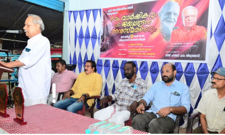 തിരുവമ്പാടി:രവീന്ദ്രൻ മാസ്റ്ററുടെ ഗാനങ്ങൾ ആലപിക്കുന്ന സമയത്തും അദ്ദേഹത്തിന്റെ സംഗീതത്തിലെ ന്യൂനതകൾക്കെതിരേ പരസ്യമായി നിലപാട് എടുക്കാൻ ധൈര്യം കാണിച്ച ഗായകനായിരുന്നു പി. ജയചന്ദ്രൻ എന്ന് പ്രശസ്ത സംഗീതജ്ഞനായ എൻ. ഉണ്ണികൃഷ്ണൻ മാസ്റ്റർ അഭിപ്രായപ്പെട്ടു. മഹത്തായ ഭാവഗായകൻ, അഭിനേതാവ് എന്നിവയ്ക്കെല്ലാം ഒപ്പം ശബ്ദാനുകരണ രംഗത്തും പി. ജയചന്ദ്രൻ സാന്നിധ്യം അറിയിച്ചിരുന്നു എന്നതും ഉണ്ണികൃഷ്ണൻ മാസ്റ്റർ അനുസ്മരിച്ചു. തിരുവമ്പാടി കലാ സാംസ്കാരിക വേദിയുടെ ഒന്നാം വാർഷികാഘോഷ പരിപാടികളുടെ ഭാഗമായ സാംസ്കാരിക സമ്മേളനത്തിൽ പി. ജയചന്ദ്രൻ അനുസ്മരണം നടത്തുകയായിരുന്നു ഉണ്ണികൃഷ്ണൻ മാസ്റ്റർ. മാർക്കറ്റിംഗ് സൊസൈറ്റി പ്രസിഡണ്ട് ബാബു മാസ്റ്റർ പൈക്കാട്ട് വിശിഷ്ടാതിഥിയായ ചടങ്ങ് സർവ്വീസ് സഹകരണ ബാങ്ക് പ്രസിഡണ്ട് ജോസ് മാത്യു ഉത്ഘാടനം ചെയ്തു. സാംസ്കാരിക സമിതി കുടുംബത്തിൽ നിന്നും സംസ്ഥാന സർക്കാർ സർവ്വീസിൽ പ്രവേശിച്ച പ്രണവ് എം.ജി., മുപ്പത്തിനാല് വർഷമായി സ്ഥിരമായി രക്ത ദാനം നടത്തി വരുന്ന ജയ്സൺ കന്നുംകുഴി എന്നിവരെ ചടങ്ങിൽ വെച്ച് ആദരിച്ചു. കാവാലം ജോർജ്ജ് മാസ്റ്റർ അധ്യക്ഷത വഹിച്ച ചടങ്ങിൽ കെ. ഡി. തോമസ്, ശശിധരൻ, പി.കെ രാജൻ, അനിൽ ബോഡിഫിറ്റ്, വിജയൻ കല്ലുരുട്ടി, മുസ്തഫ ടി.കെ. അജു എമ്മാനുവൽ, ഡോ. ബെസ്റ്റി ജോസ് തുടങ്ങിയവർ സംസാരിച്ചു. തുടർന്ന് സംഘടിപ്പിച്ച സംഗീത വിരുന്നിൽ ലീന ബെസ്റ്റി, രഞ്ജിത്ത് മാസ്റ്റർ, വേണുദാസൻ ചിറ്റാരിക്കൽ, ശശീന്ദ്രൻ, രമ ശശിധരൻ, രാജു കയത്തിങ്കൽ, ഗോപാലൻകുട്ടി അമ്പലപ്പാറ, സാജു കൂടരഞ്ഞി, കുട്ടൻ അമ്പലപ്പാറ, കെ. ഡി. തോമസ്, സുനി കാവുങ്കൽ, രഘു എസ്മ, ഷമീർ എം.ബി. തുടങ്ങിയ ഗായകർ ഗാനങ്ങൾ ആലപിച്ചു.