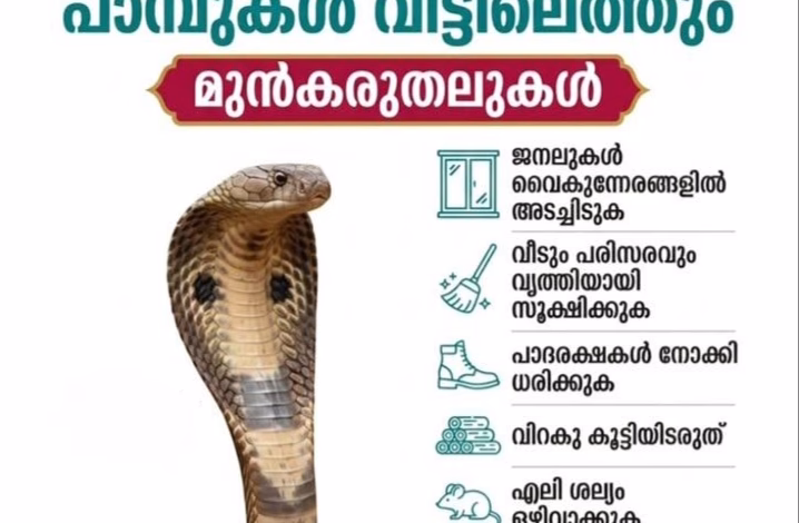 മാളംവിട്ട് പാമ്പുകൾ; വേണം പ്രത്യേക കരുതൽ, ഈർപ്പം തേടി വീട്ടിലും പരിസരത്തും പാമ്പുകളെത്തും.