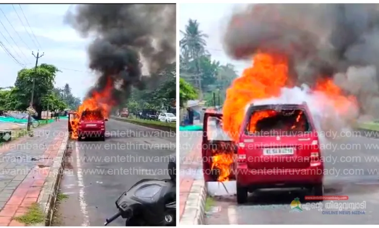 കോഴിക്കോട് കോന്നാട് ബീച്ചിൽ ഓടുന്ന കാറിന് തീപിടിച്ചു; ഒരാൾക്ക് ധാരുണാന്ത്യം- വീഡിയോ