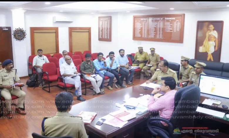 യോഗത്തില് ജില്ലാ കലക്ടര് സ്നേഹില്കുമാര് സിംഗ്, അസിസ്റ്റന്റ് കലക്ടര് പ്രതീക് ജെയിന്, ഡിസിപി അനൂജ് പലിവാള്, എന്ഫോഴ്സ്മെന്റ് ആര്ടിഒ ബി ഷെഫീഖ് വടകര, കോഴിക്കോട് ആര്ടിഒമാര്, പൊതുമരാമത്ത്, ദേശീയപാത, കെഎസ്ഇബി, എല്എസ്ജിഡി സെക്രട്ടറി തുടങ്ങിയ ഉദ്യോഗസ്ഥര് പങ്കെടുത്തു.