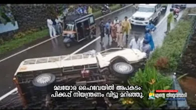 മലയോര ഹൈവേയിൽ അപകടം:പിക്കപ്പ് നിയന്ത്രണം വിട്ടു മറിഞ്ഞു.