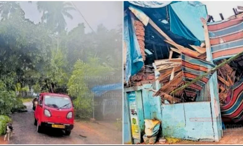 തിരുവമ്പാടി: തമ്പലമണ്ണ ഭാഗത്ത് ഇന്നലെ രാവിലെ വീശിയടിച്ച കനത്ത കാറ്റിലും മഴയിലും വൻ നാശനഷ്ടം. തമ്പലമണ്ണ അത്തിപ്പാറ റോഡിൽ കെഎസ്ഇബി സബ് സ്റ്റേഷന് സമീപം വീട്ടുമുറ്റത്തു നിന്ന കൊന്നമരം കടപുഴകി 11 കെവി ലൈനിലേക്കു വീണു. കൃഷി നാശവും സംഭവിച്ചിട്ടുണ്ട്. ചിറ്റാനി പാറ ഭാസി, കടപ്രയിൽ ടോം തോമസ് എന്നിവരുടെ കുലച്ചതും കുലയ്ക്കാറായതുമായ വാഴകൾ ഒടിഞ്ഞു വീണു. പ്രദേശത്ത് വൻതോതിൽ കൃഷിനാശം ഉണ്ടായിട്ടുണ്ട്.