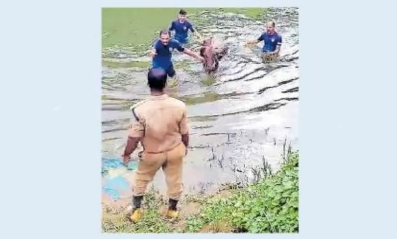 തിരുവമ്പാടി: പുഴയിലെ ചതുപ്പിൽ അകപ്പെട്ട പശുവിനെ മുക്കം അഗ്നിരക്ഷാ സേന രക്ഷപ്പെടുത്തി. തൊണ്ടിമ്മൽ സാൻജോ പ്രതീക്ഷാ ഭവൻ കോൺവന്റിലെ 8 വയസ്സ് പ്രായമുള്ള പശു ആണ് ഇരുവഞ്ഞി പുഴയിൽ അകപ്പെട്ടത്. ഫയർ സ്റ്റേഷനിലെ അസി. സ്റ്റേഷൻ ഓഫിസർ എം.സി. മനോജിന്റെ നേതൃത്വത്തിലുള്ള സേന എത്തി പശുവിനെ കയറ്റാൻ ശ്രമിച്ചെങ്കിലും ചെളിയിൽ നിന്ന് പശുവിന് കയറാൻ സാധിച്ചില്ല.