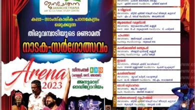 ജനചേതന സംഘടിപ്പിക്കുന്ന തിരുവാമ്പാടിയുടെ രണ്ടാമത് നാടക സർഗോത്സവം – അറീന 2023 – ഡിസംബർ 8, 9, 10 ( വെള്ളി, ശനി, ഞായർ ) തിരുവാമ്പാടി…